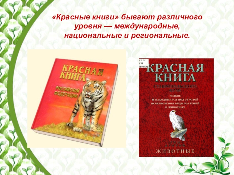 Слайд 3«Красные книги» бывают различного уровня — международные, национальные и региональные.