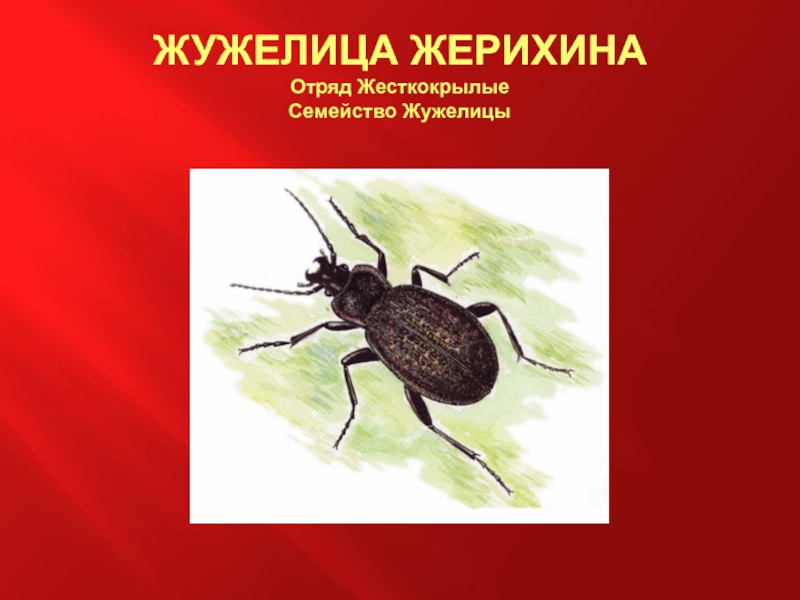 Слайд 24 ЖУЖЕЛИЦА ЖЕРИХИНА Отряд Жесткокрылые Семейство Жужелицы
