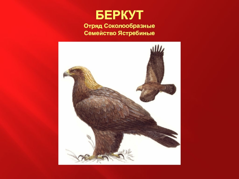 Слайд 11 БЕРКУТ Отряд Соколообразные Семейство Ястребиные