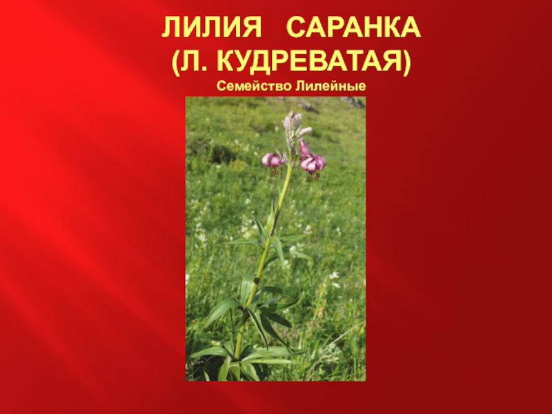 Слайд 33 ЛИЛИЯ САРАНКА (Л. КУДРЕВАТАЯ) Семейство Лилейные