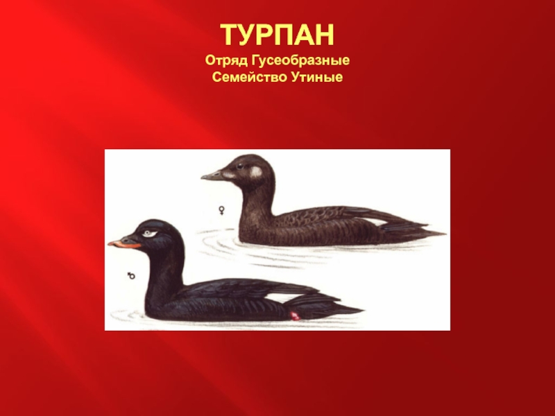 Слайд 9 ТУРПАН Отряд Гусеобразные Семейство Утиные