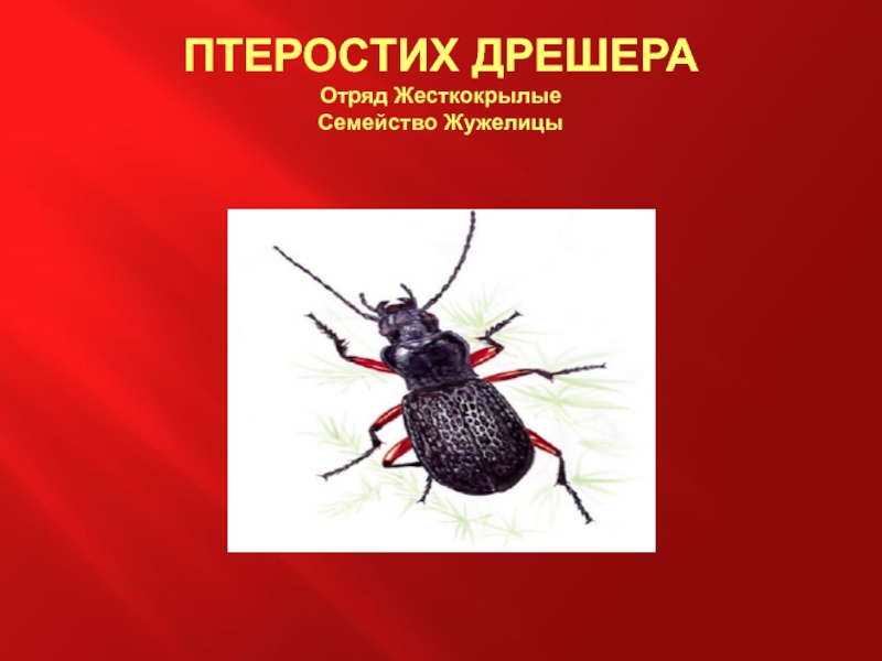 Слайд 25 ПТЕРОСТИХ ДРЕШЕРА Отряд Жесткокрылые Семейство Жужелицы