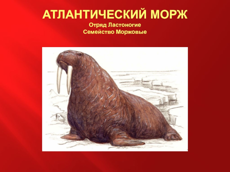 Слайд 6 АТЛАНТИЧЕСКИЙ МОРЖ Отряд Ластоногие Семейство Моржовые
