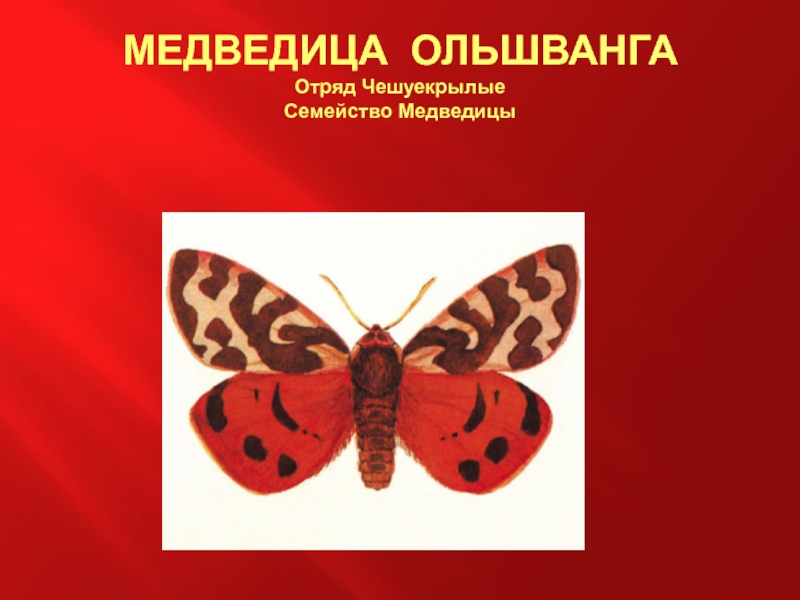 Слайд 28 МЕДВЕДИЦА ОЛЬШВАНГА Отряд Чешуекрылые Семейство Медведицы