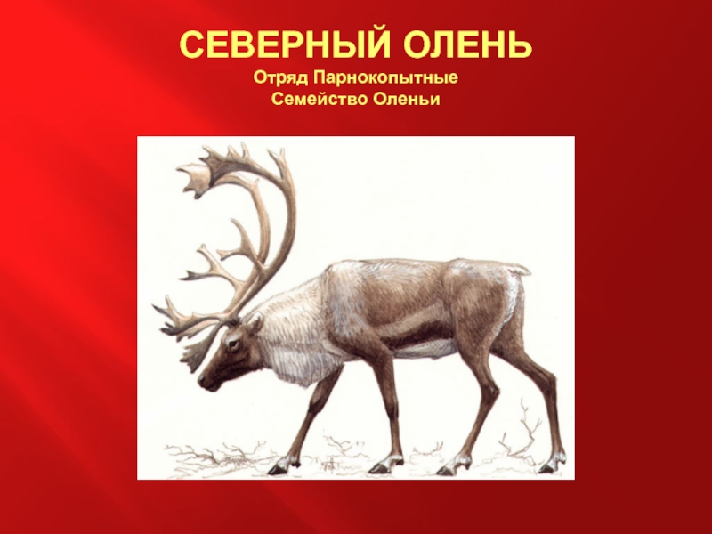 Слайд 7 СЕВЕРНЫЙ ОЛЕНЬ Отряд Парнокопытные Семейство Оленьи