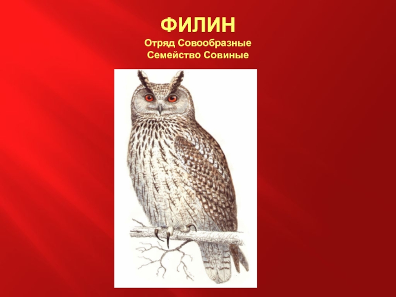 Слайд 17 ФИЛИН Отряд Совообразные Семейство Совиные