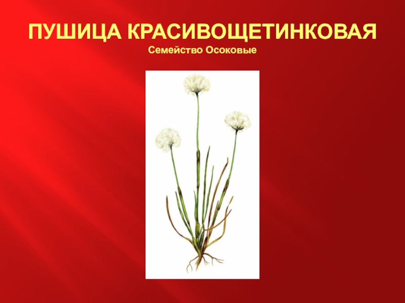 Слайд 32 ПУШИЦА КРАСИВОЩЕТИНКОВАЯ Семейство Осоковые