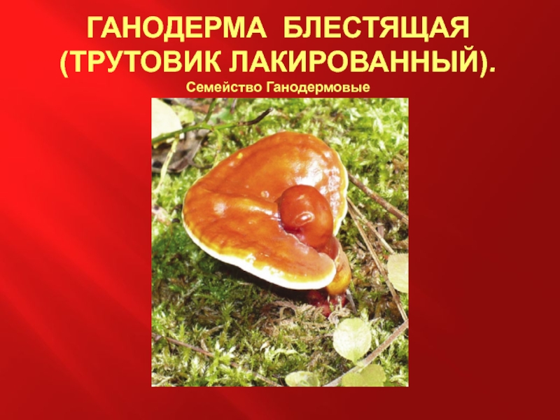 Слайд 45ГАНОДЕРМА БЛЕСТЯЩАЯ (ТРУТОВИК ЛАКИРОВАННЫЙ). Семейство Ганодермовые
