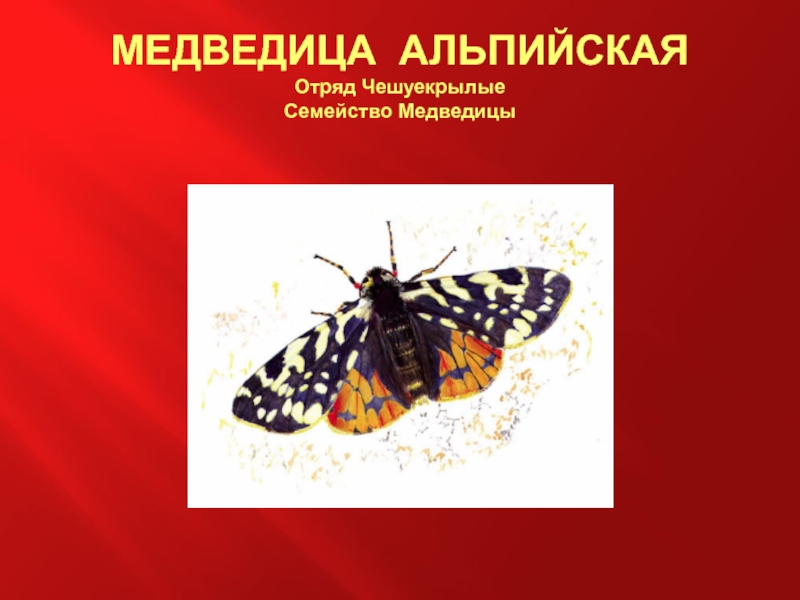 Слайд 26 МЕДВЕДИЦА АЛЬПИЙСКАЯ Отряд Чешуекрылые Семейство Медведицы