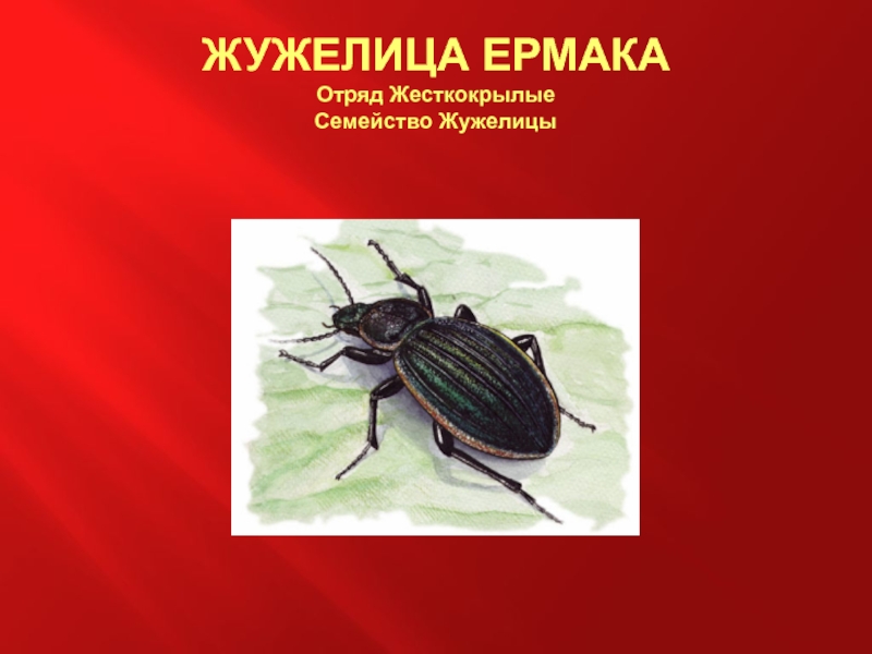 Слайд 23ЖУЖЕЛИЦА ЕРМАКА Отряд Жесткокрылые Семейство Жужелицы