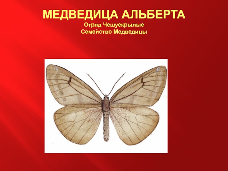Слайд 27МЕДВЕДИЦА АЛЬБЕРТА Отряд Чешуекрылые Семейство Медведицы