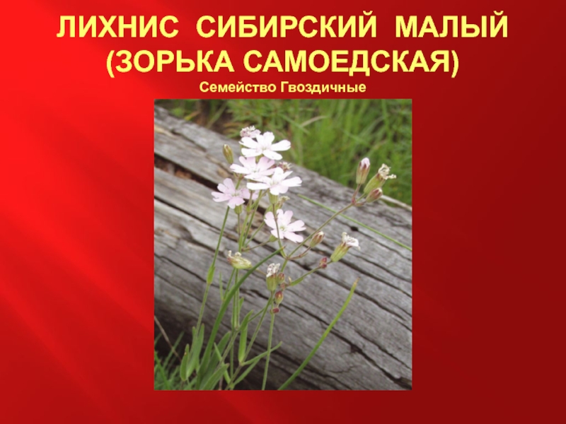 Слайд 36 ЛИХНИС СИБИРСКИЙ МАЛЫЙ (ЗОРЬКА САМОЕДСКАЯ) Семейство Гвоздичные