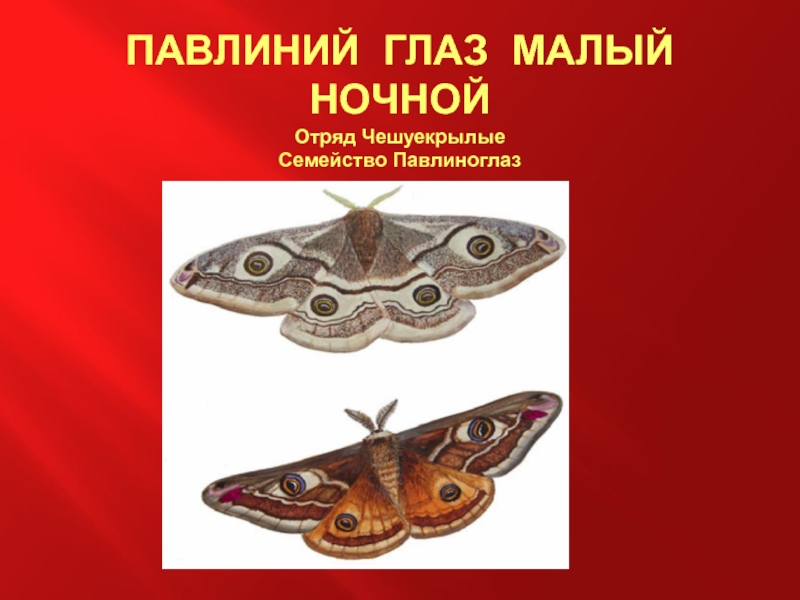 Слайд 29 ПАВЛИНИЙ ГЛАЗ МАЛЫЙ НОЧНОЙ Отряд Чешуекрылые Семейство Павлиноглаз