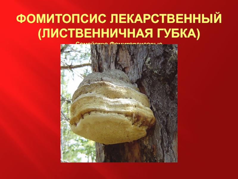 Слайд 46 ФОМИТОПСИС ЛЕКАРСТВЕННЫЙ (ЛИСТВЕННИЧНАЯ ГУБКА) Семейство Фомитопсисовые