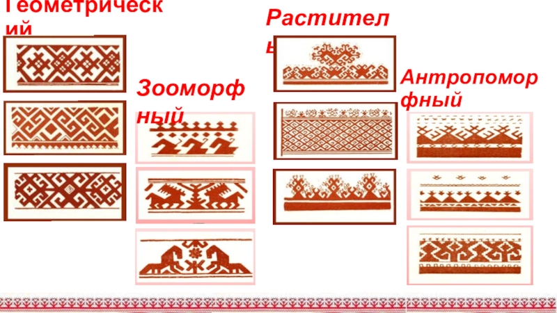 ГеометрическийЗооморфныйРастительныйАнтропоморфный