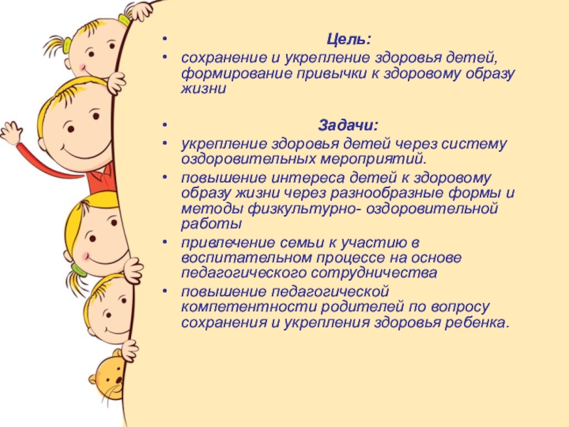 сохранение и укрепление здоровья детей, формирование привычки к здоровому образу жизни