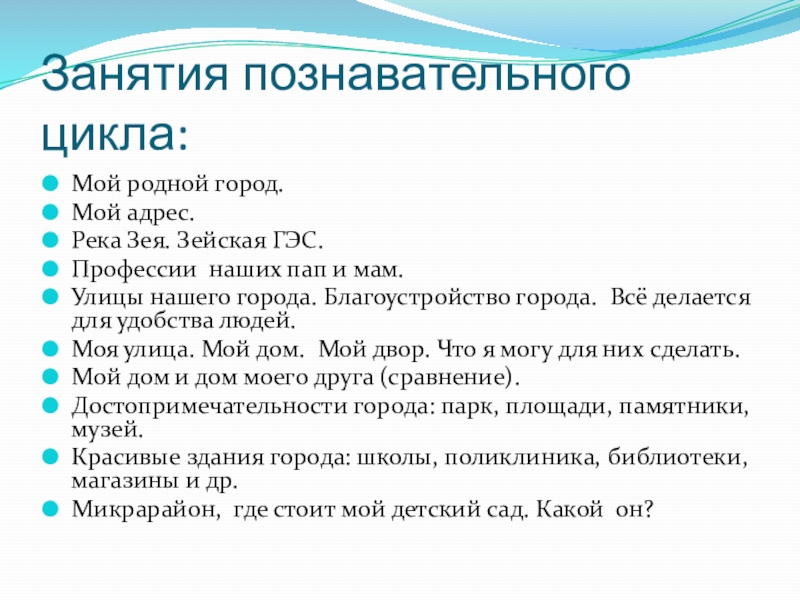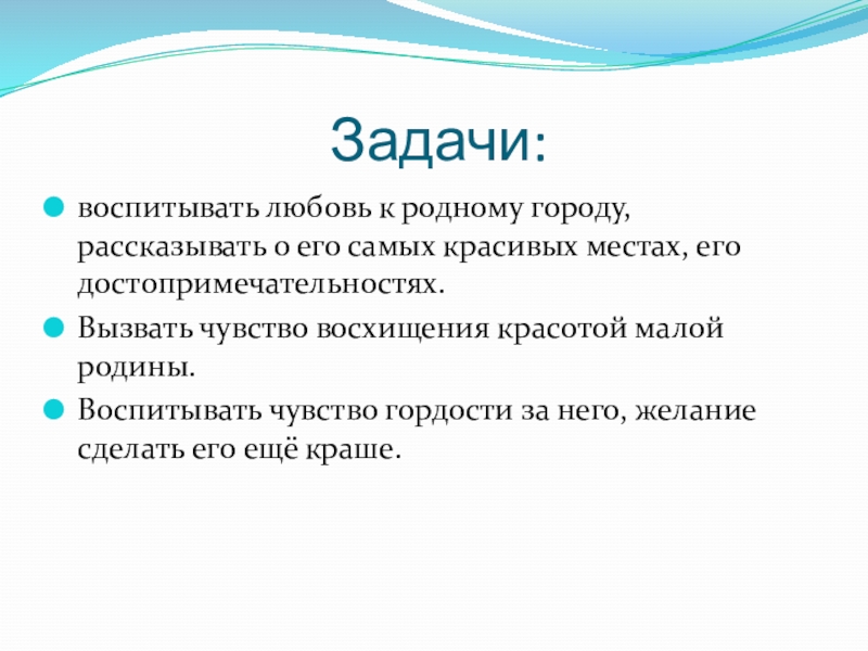 воспитывать любовь к родному городу, рассказывать о его самых красивых местах, его достопримечательностях.