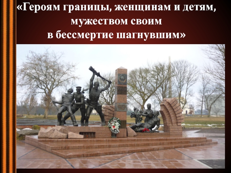 Слайд 24«Героям границы, женщинам и детям, мужеством своим в бессмертие шагнувшим»