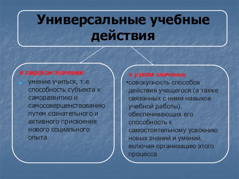 совокупность способов действия учащегося (а также связанных с ними навыков учебной работы), обеспечивающих его способность к самостоятельному усвоению новых знаний и умений, включая организацию этого процесса