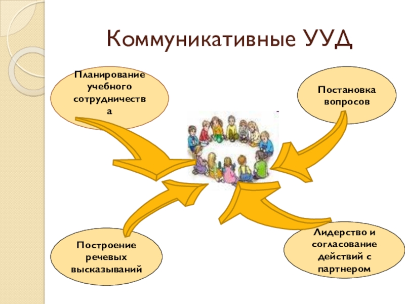 Коммуникативные УУДПланированиеучебногосотрудничестваПостановка вопросовПостроениеречевыхвысказыванийЛидерство исогласованиедействий спартнером