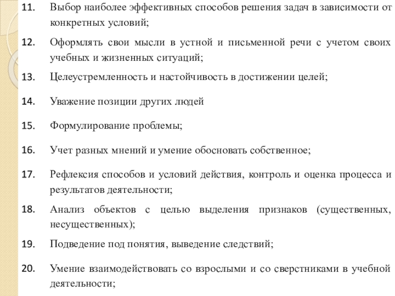 планировать и согласованно выполнять совместную деятельность, распределять роли, взаимно контролировать действия друг друга, уметь договариваться, вести дискуссию, правильно выражать свои мысли в речи, уважать в общении и сотрудничества партнера и самого себя.