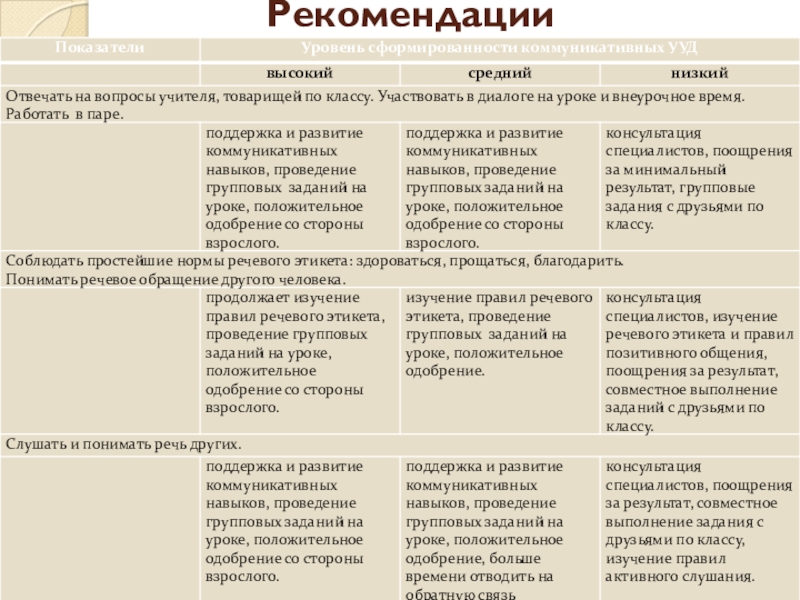 Презентация, доклад Критерии оценивания сформированности коммуникативных действий