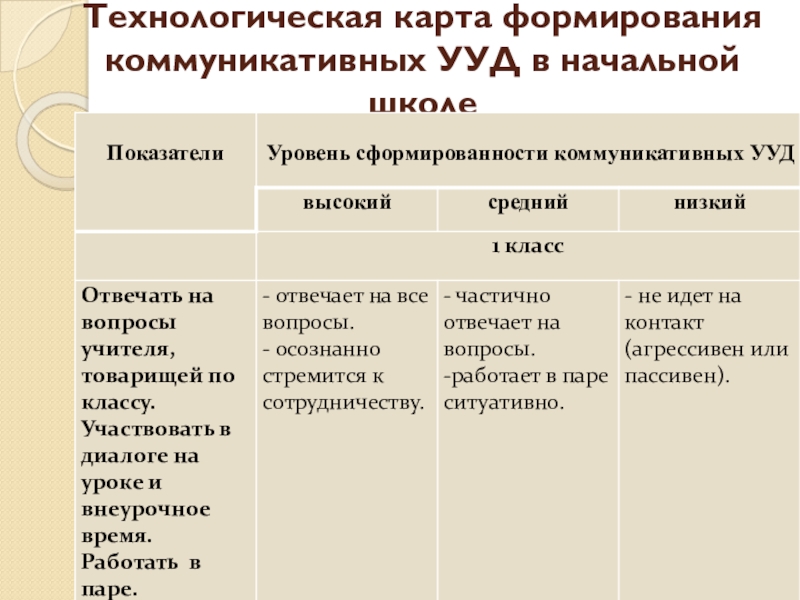 Слайд 8Технологическая карта формирования коммуникативных УУД в начальной школе