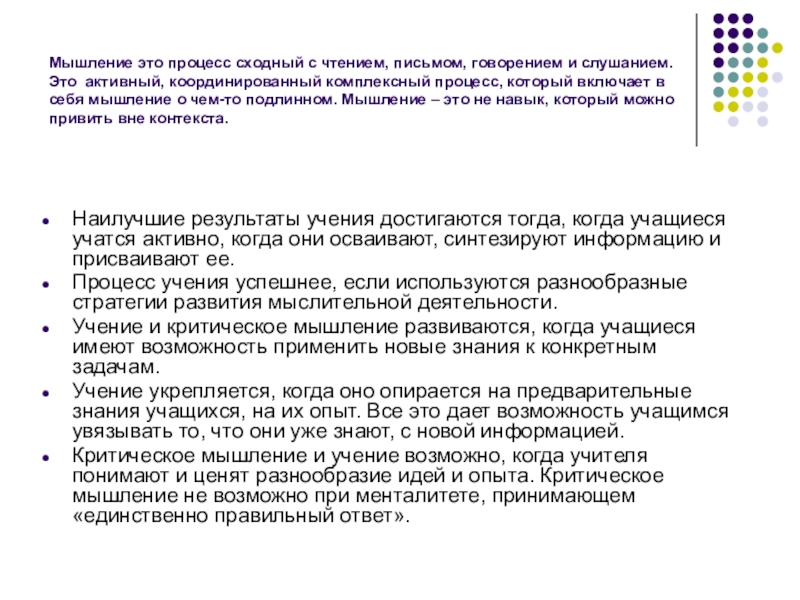 Процесс учения успешнее, если используются разнообразные стратегии развития мыслительной деятельности.