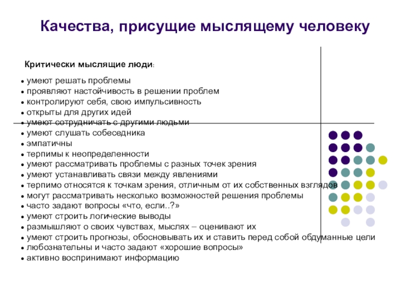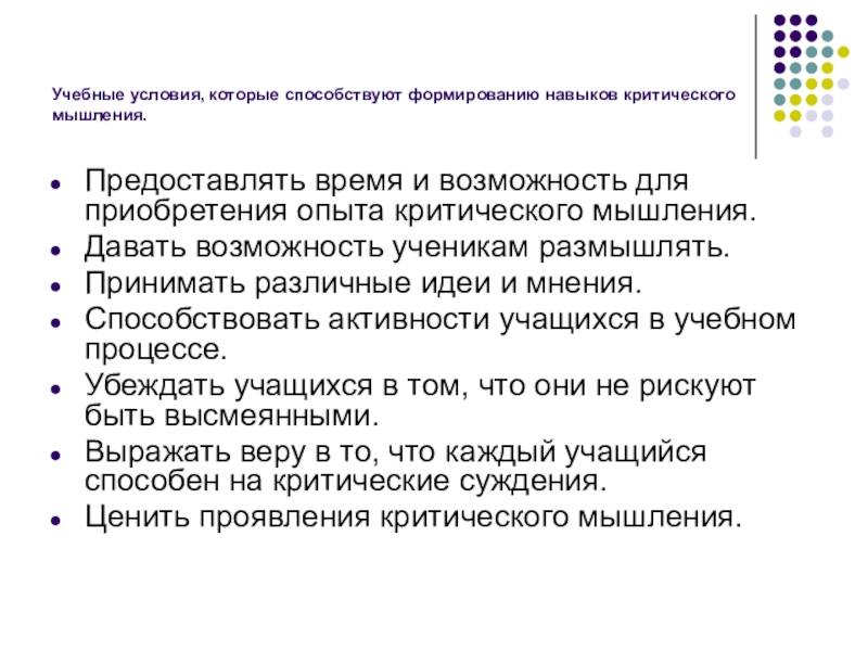 Критическое мышление и учение возможно, когда учителя понимают и ценят разнообразие идей и опыта. Критическое мышление не возможно при менталитете, принимающем «единственно правильный ответ».
