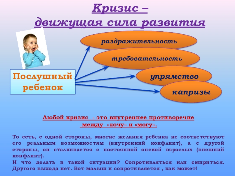 Например, мама предлагает идти на прогулку. Малыш, который обожает гулять, почему-то заявляет: «Не пойду!» Почему? Потому что это мама предложила идти гулять, а не он сам так решил!