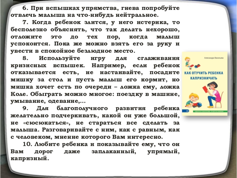 Направляйте энергию ребенка в мирное русло. Например, если малыш рвет книжку, предложите