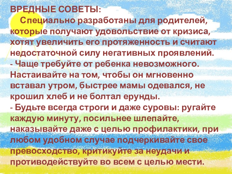 Слайд 17ВРЕДНЫЕ СОВЕТЫ: