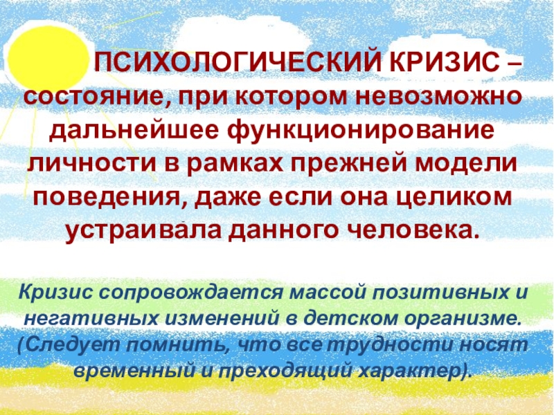 Слайд 3 ПСИХОЛОГИЧЕСКИЙ КРИЗИС – состояние, при