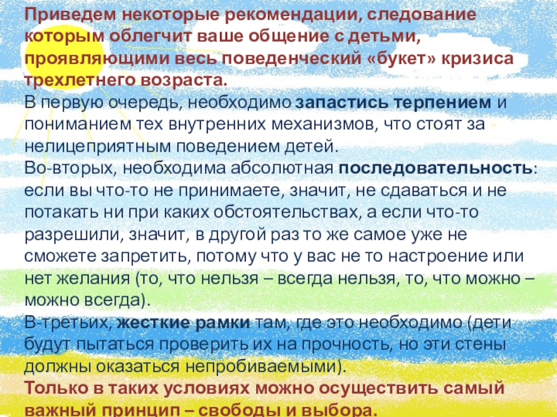 Слайд 16Приведем некоторые рекомендации, следование которым облегчит ваше общение с детьми, проявляющими