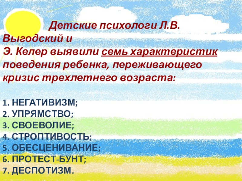 Э. Келер выявили семь характеристик поведения ребенка, переживающего кризис трехлетнего возраста: