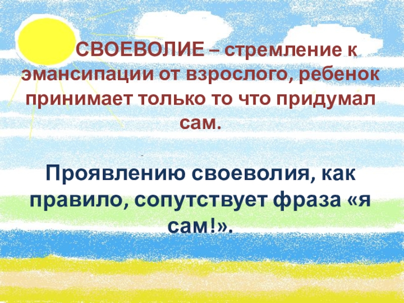 Слайд 10 СВОЕВОЛИЕ – стремление к эмансипации от взрослого,