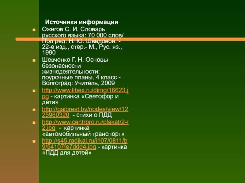Шевченко Г. Н. Основы безопасности жизнедеятельности: поурочные планы. 4 класс - Волгоград: Учитель, 2009