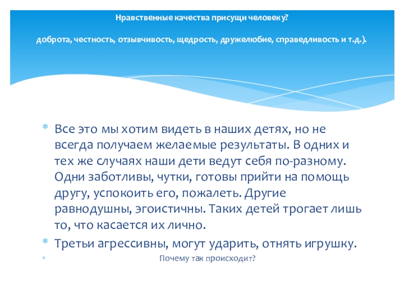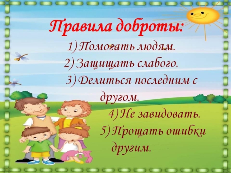доброта, честность, отзывчивость, щедрость, дружелюбие, справедливость и т.д.).