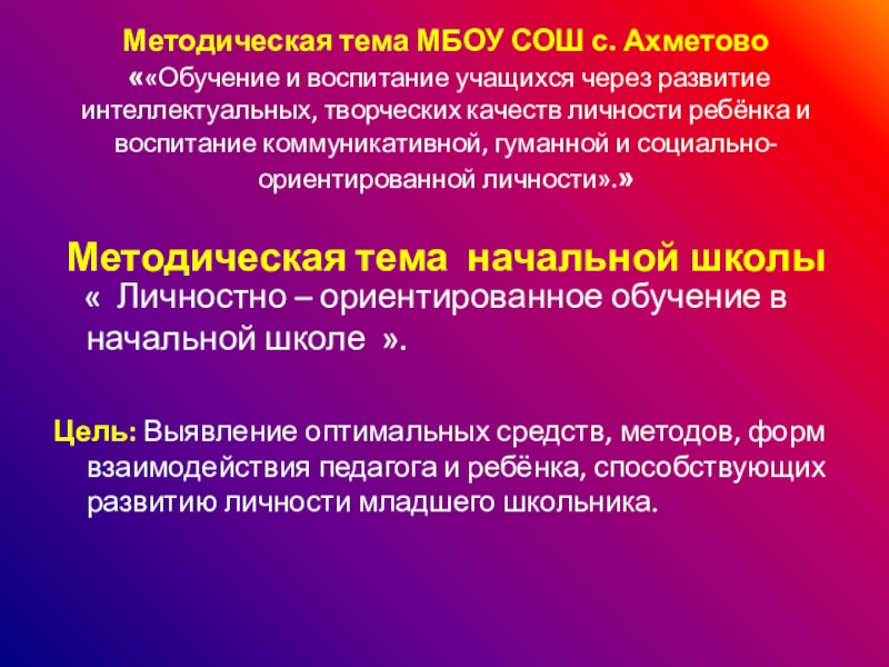 Цель: Выявление оптимальных средств, методов, форм взаимодействия педагога и ребёнка, способствующих развитию личности младшего школьника.