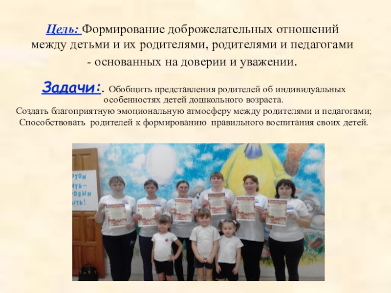 Создать благоприятную эмоциональную атмосферу между родителями и педагогами;