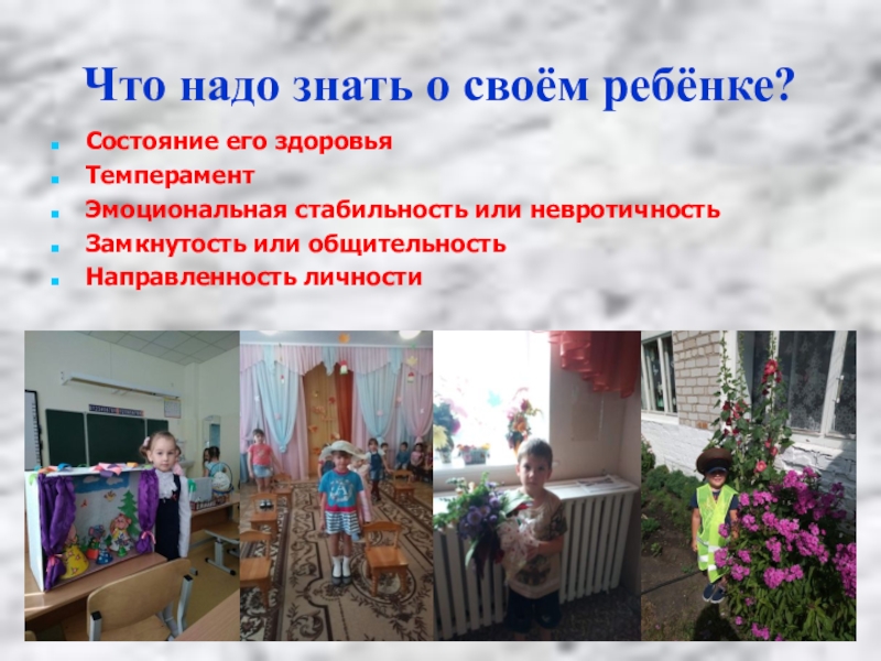 Задачи:. Обобщить представления родителей об индивидуальных особенностях детей дошкольного возраста.