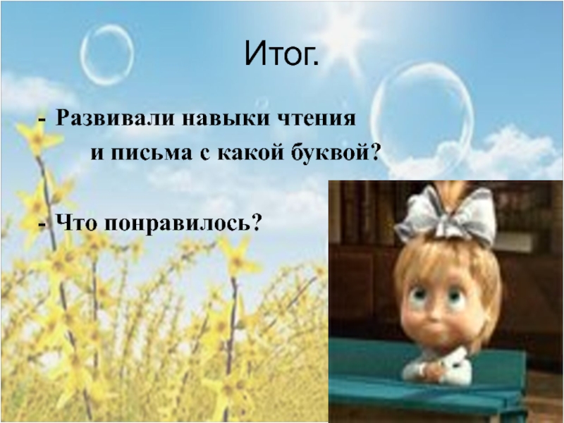 Цель: развивать навыки чтения слов и предложений, содержащих букву ы,а также навыки анализа слов и каллиграфического письма, развивать мышление,прививать интерес.