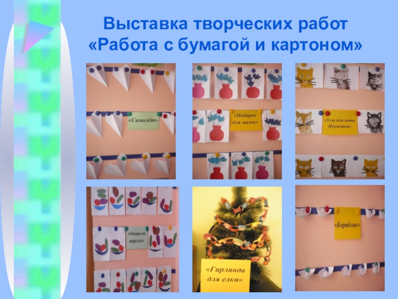Слайд 8Выставка творческих работ «Работа с бумагой и картоном»