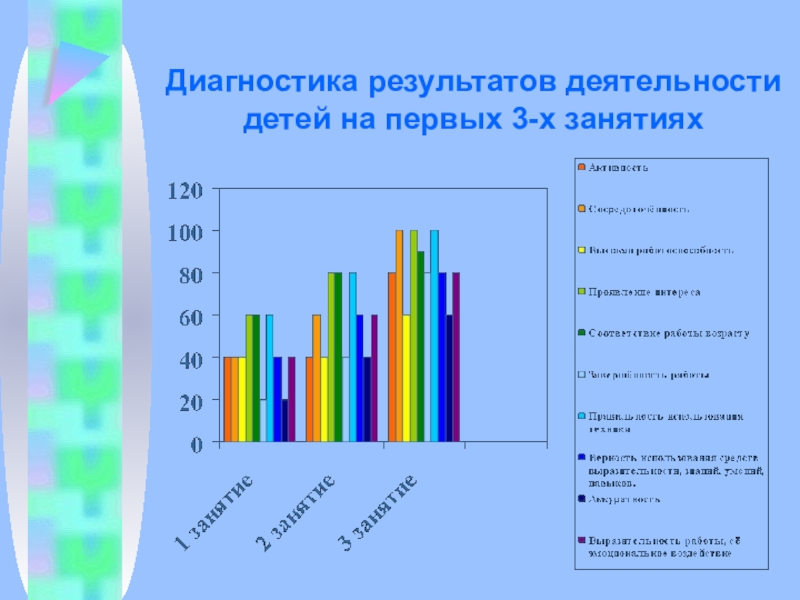 Слайд 11Диагностика результатов деятельности детей на первых 3-х занятиях