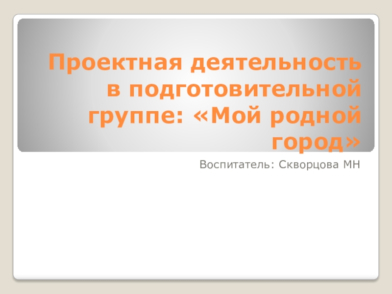 Слайд 1Проектная деятельность в подготовительной группе: «Мой родной город»