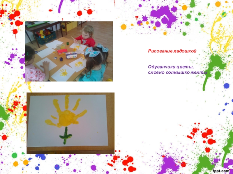 Слайд 13Рисование ладошкой Одуванчики цветы, словно солнышко желты