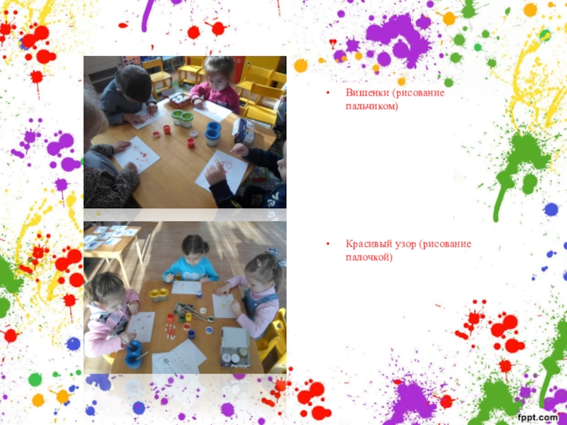 Вишенки (рисование пальчиком)Красивый узор (рисование палочкой)