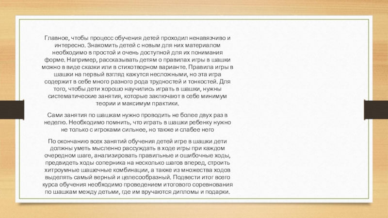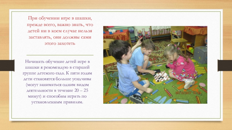 Слайд 7При обучении игре в шашки, прежде всего, важно знать, что детей