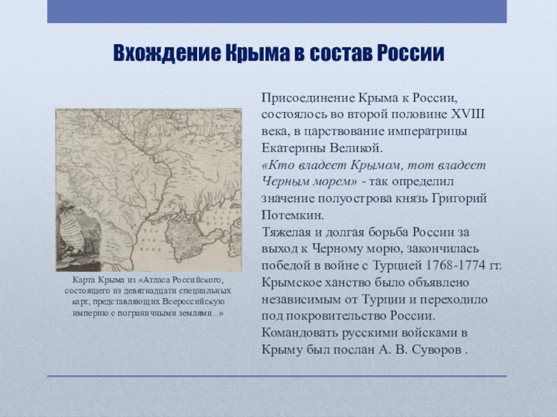 Карта Крыма из «Атласа Российского, состоящего из девятнадцати специальных карт, представляющих Всероссийскую империю с пограничными землями...»