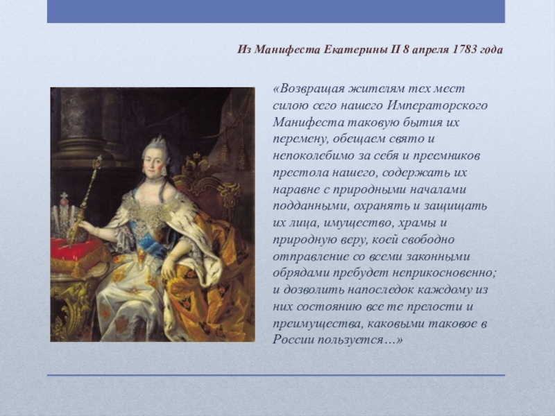 Из Манифеста Екатерины II 8 апреля 1783 года